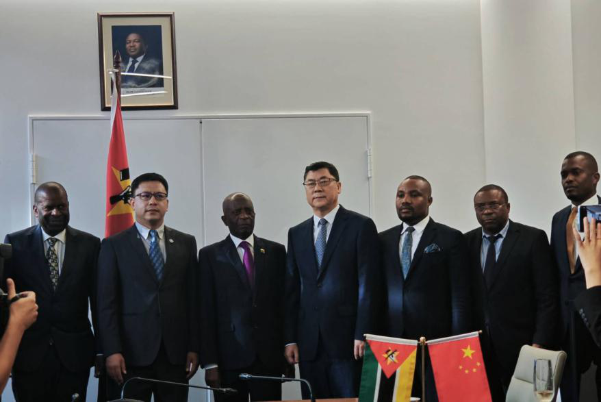 5月23日,王贺军大使与莫能矿部长扎卡里亚斯共同出席中国海油与莫能矿部举办的莫桑比克五个区块(A6-D、A6-E、A6-G和S6-A、S6-B)石油勘探与生产特许合同签约仪式。莫桑比克国家石油局局长班加拉内、莫桑比克国家石油公司主席巴勒、驻莫使馆参赞徐伟丽等参加活动。